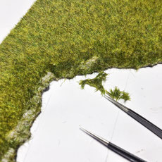 - Arrange your layout. Fix units and/or separate pavers according to plan. Use superglue fixing your layout to an appropriate base. When combining with a different surface texture, be sure the upper surfaces of the pavers line up with the height of the adjacent type of ground texture. (Grass, concrete).