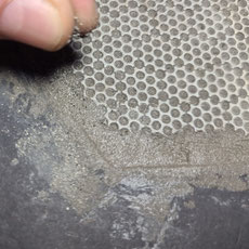 First turn of paste comes in. I used some water in order to make it set in the holes better. Next day the second turn of paste came in, levelling everything.