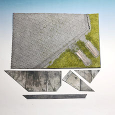 Cross checking how the textures look like once being combined. One can brighten up the concrete with a transparent mist of concrete Grey if required. Would eat some of the contrast but on this particular print the contrast is quite heavy anyway.